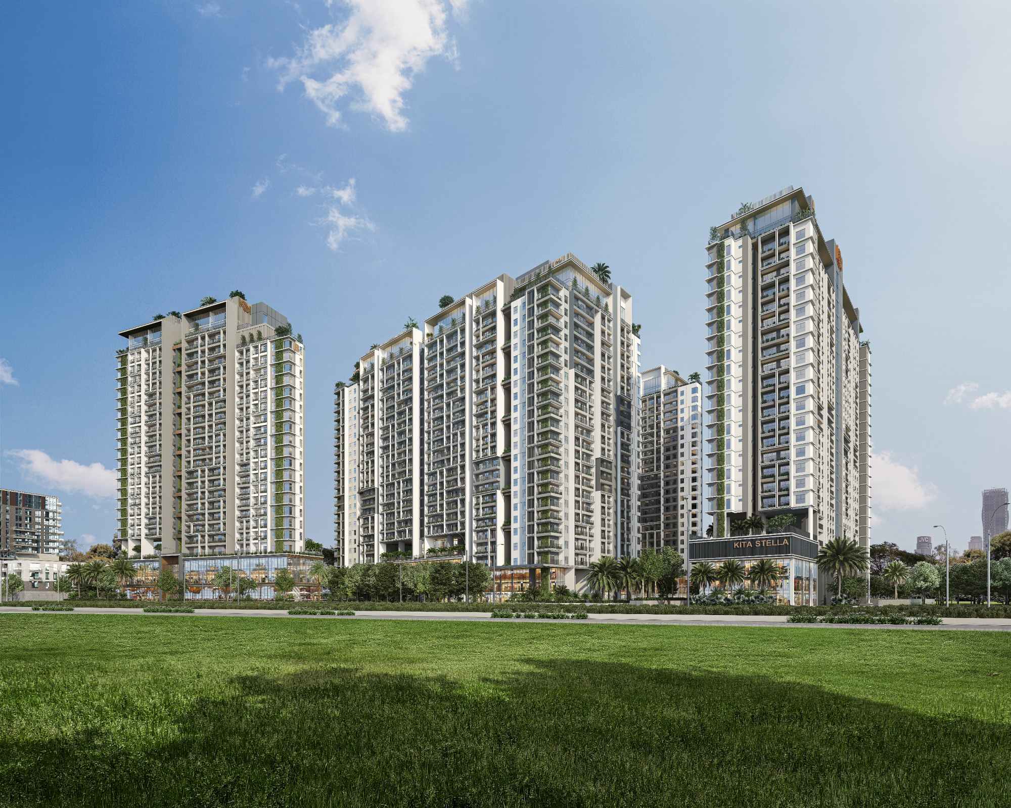 Cấu trúc khối tháp: Gồm 3 – 5 block căn hộ cao từ 25 đến 28 tầng. Các tòa tháp được bố trí theo hình chữ U. Cách sắp xếp này giúp 100% căn hộ không bị chắn tầm nhìn (view thoáng) và tạo luồng đối lưu không khí xuyên suốt toàn khu.